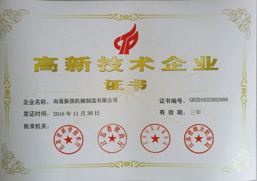 江蘇振強機械科技股份有限公司 >> 公司簡介 >> 資質證書 >> 高新技術企業證書